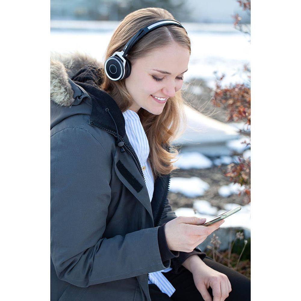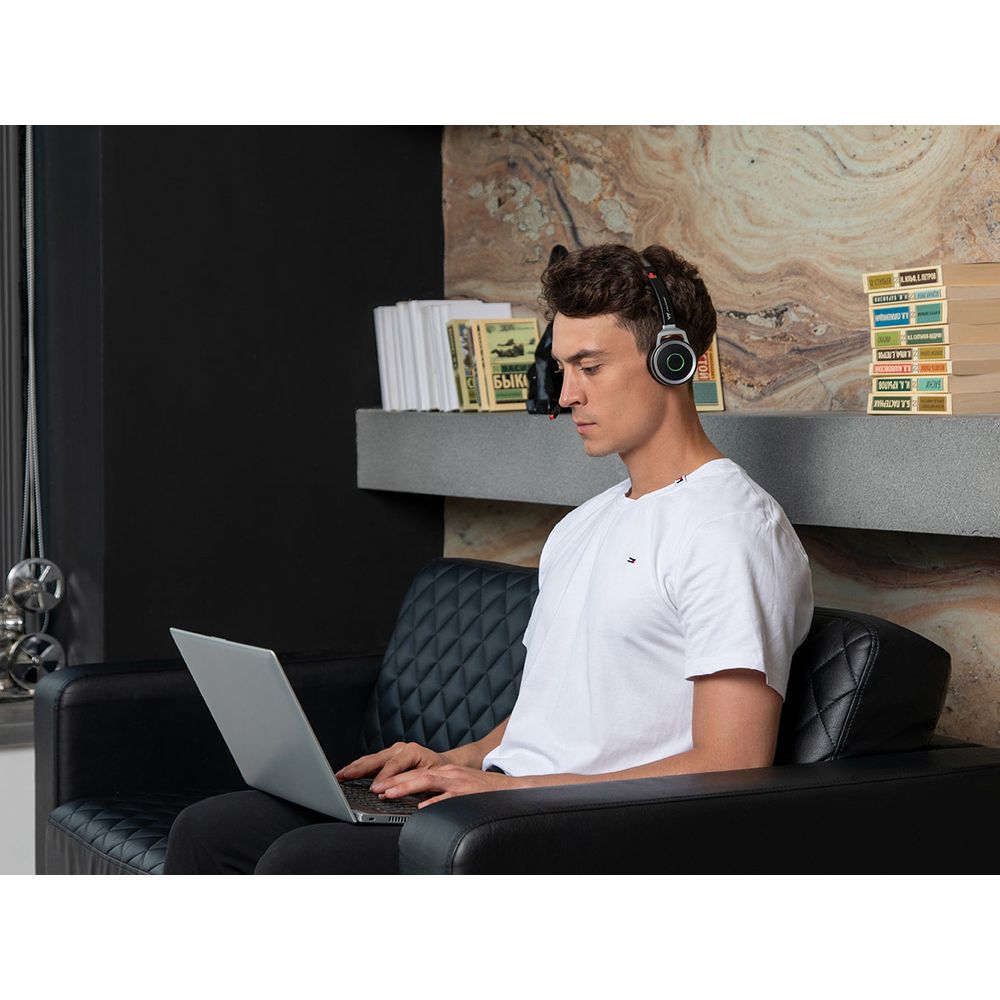 Сменные амбушюры из эко-кожи и регулируемые спикеры с 2-мя степенями свободы, а также малый вес гарнитуры обеспечивают комфортное ношение весь рабочий день.