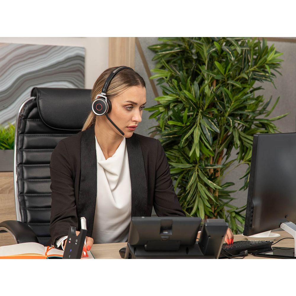 VT9605-D - топовая беспроводная бинауральная Bluetooth-гарнитура премиум класса. Данная гарнитура легко подключается к компьютеру/ноутбуку или мобильному устройству по протоколу Bluetooth 4.1. Идеально подойдёт как для проведения переговоров в популярных мессенджерах, софт-фонах и UC-клиентах, так и для прослушивания музыки.