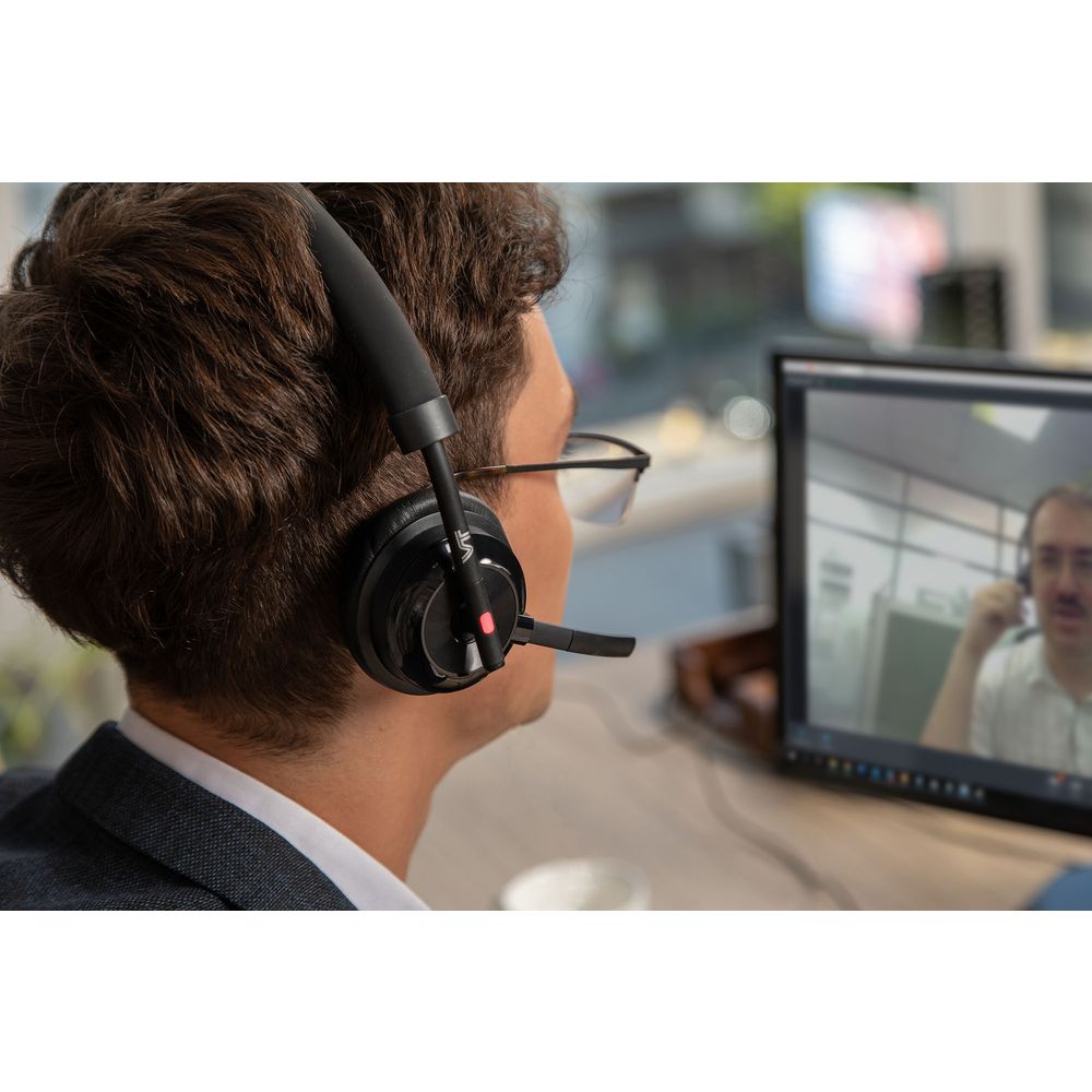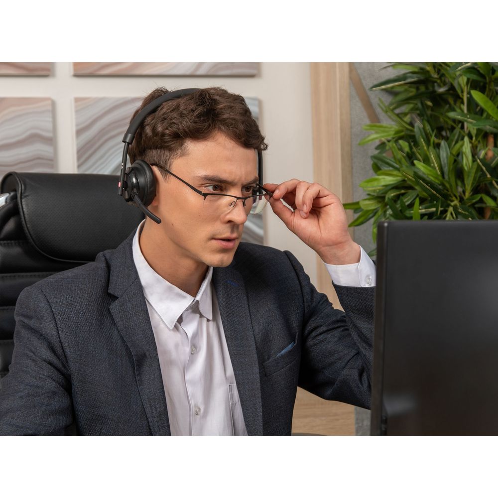 Гарнитура сделана из качественных изностойких материалов. Сменные амбушюры и оголовье из перфорированной экокожи обеспечивают хорошее прилегание и комфортное ношение на протяжении всего рабочего дня и экранирование посторонних шумов.